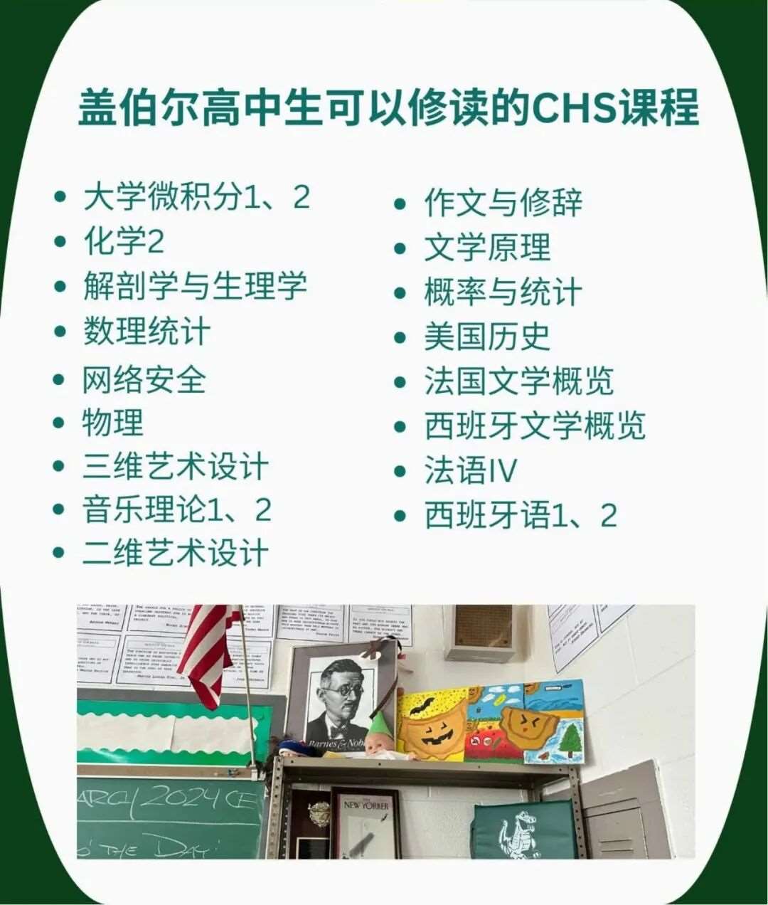 盖伯尔高中一共提供19门CHS课程,在盖伯尔所……学分,可直接转学分至全美绝大多数大学。