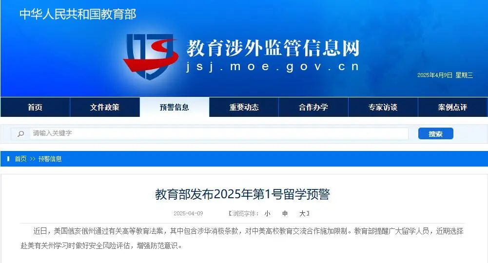 然而,俄亥俄州法案仅影响特定合作形式,与普通自费留学生无直接关联。2021年教育部就曾因澳大利亚治安事件发布类似预警,此次预警延续了教育部根据国际形势变化动态提醒的一贯做法。此次预警是风险提示而非禁令,常规留学生群体无需过度解读